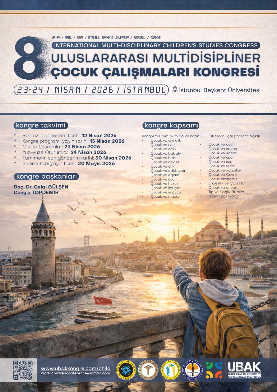 İstanbul Beykent Üniversitesi, 23-24 Nisan 2026 tarihlerinde 8. Uluslararası Multidisipliner Çocuk Çalışmaları Kongresi’ne ev sahipliği yapacak.