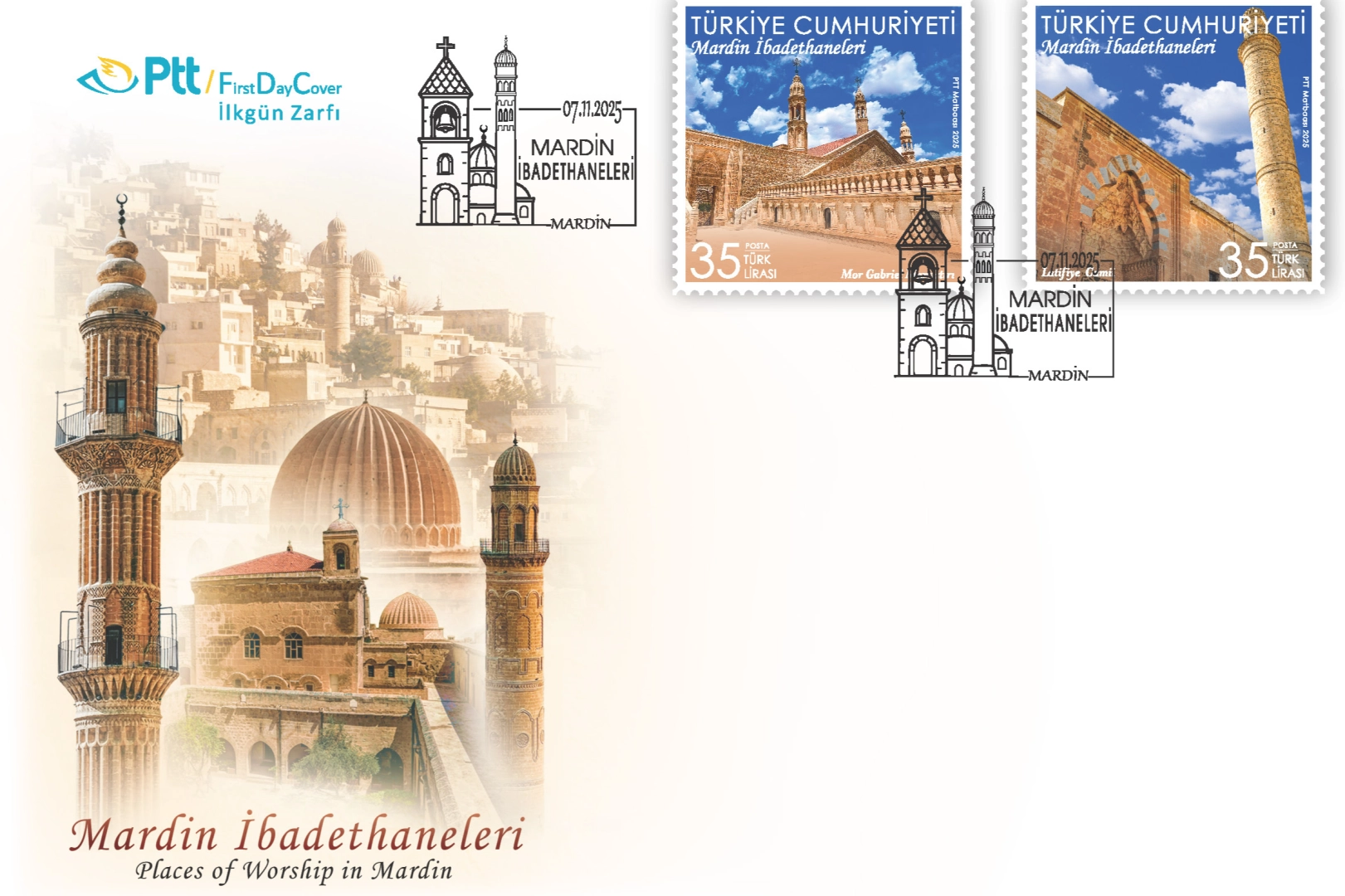 PTT AŞ tarafından “Mardin İbadethaneleri” konulu anma pulu ve ilkgün zarfı 7 Kasım 2025 tarihinde tedavüle sunuldu.