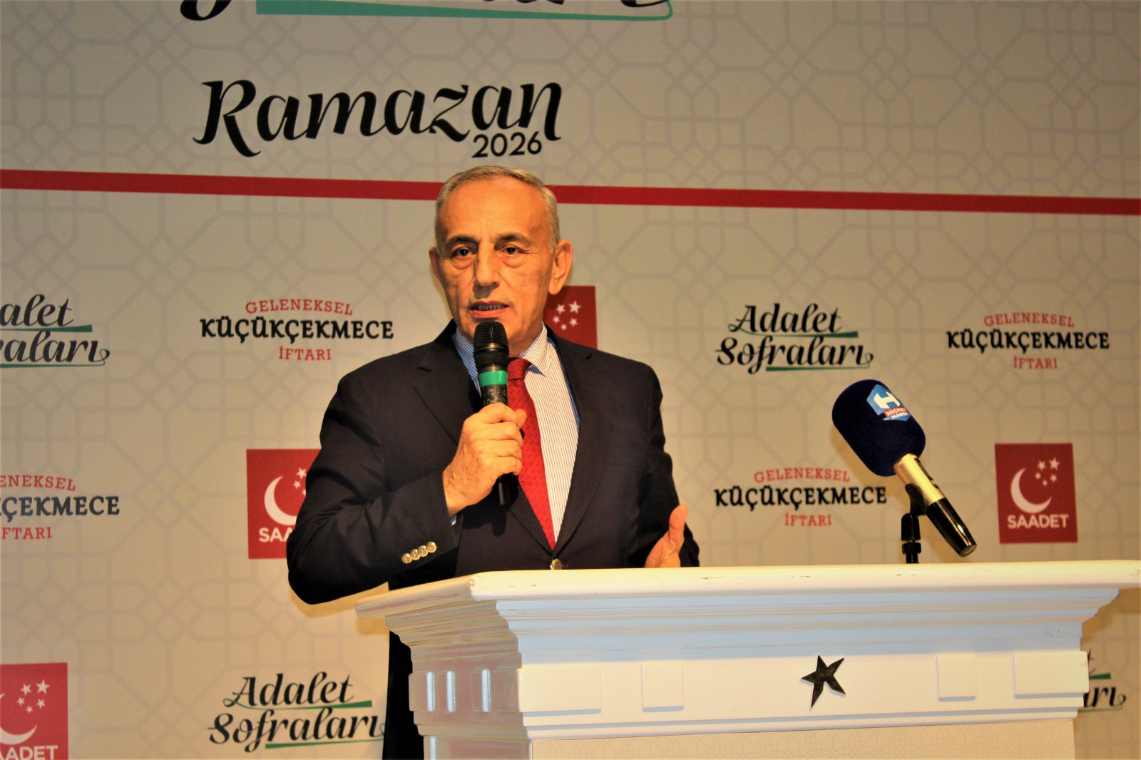Konuşmasında Ramazan ayının sadece oruç tutmak değil; paylaşmak, gönülleri birleştirmek ve ihtiyaç sahiplerini gözetmek anlamına geldiğini ifade eden Saadet Partisi temsilcisi, siyaseti makam için değil millet için yaptıklarını belirtti. Merhum Milli Görüş lideri Necmettin Erbakan’ın “Önce ahlak ve maneviyat” anlayışını hatırlatan konuşmacı, adil bir düzenin ancak ahlaklı bir toplumla mümkün olabileceğini vurguladı.